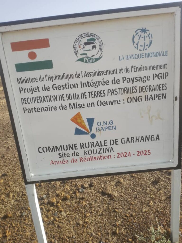 Sur le site de Kouzina, commune de Garhanga, l’ONG BAPEN, avec le financement du PGIP, met en œuvre un projet de restauration de 90 hectares de terres dégradées à travers la réalisation de demi-lunes pastorales.